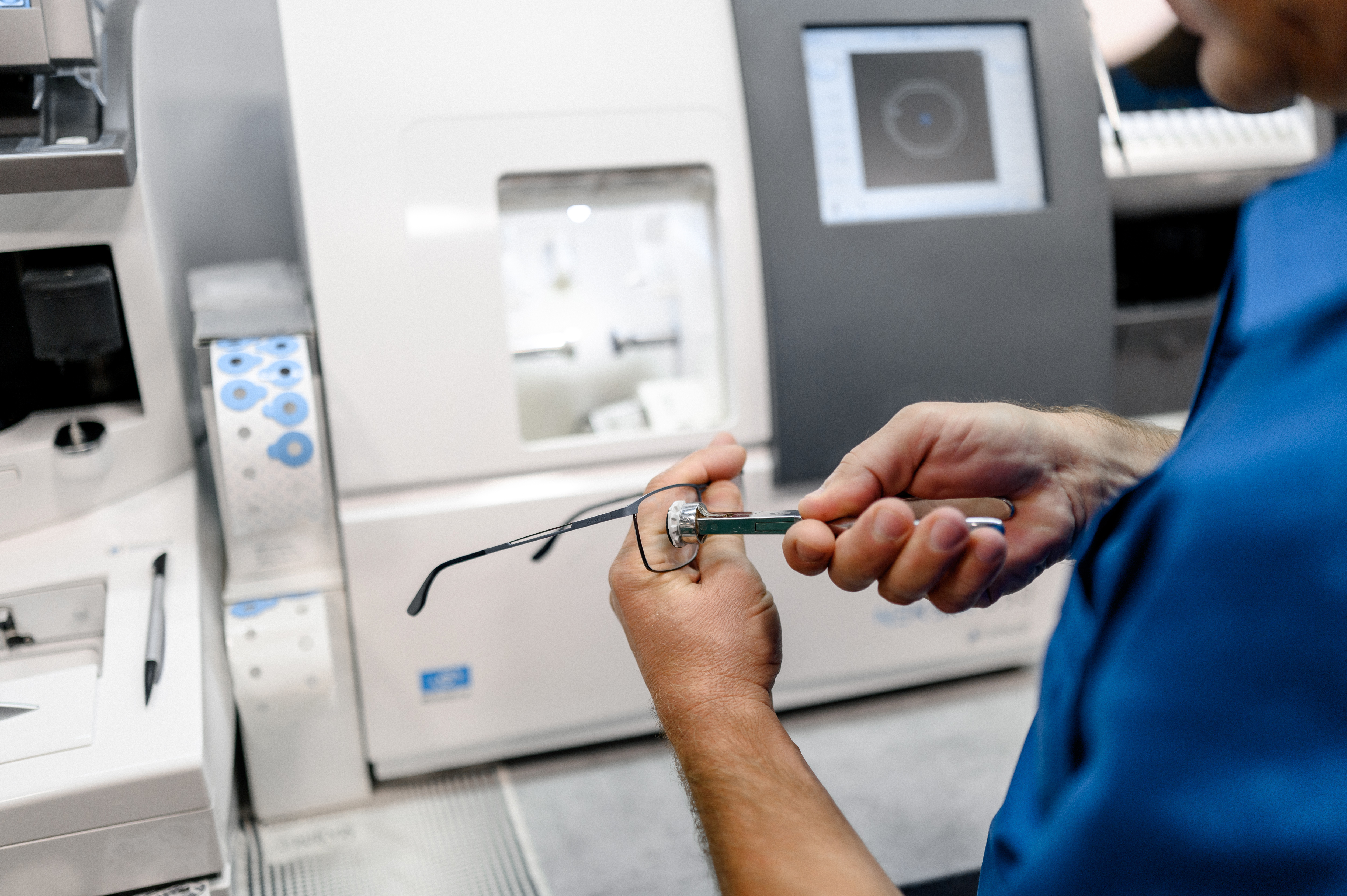 - После установки линз мы проводим финальный контроль качества, проверяя, чтобы очки полностью соответствовали рецепту и требованиям клиента. Мы также выполняем окончательную настройку оправы, чтобы очки удобно сидели на лице.